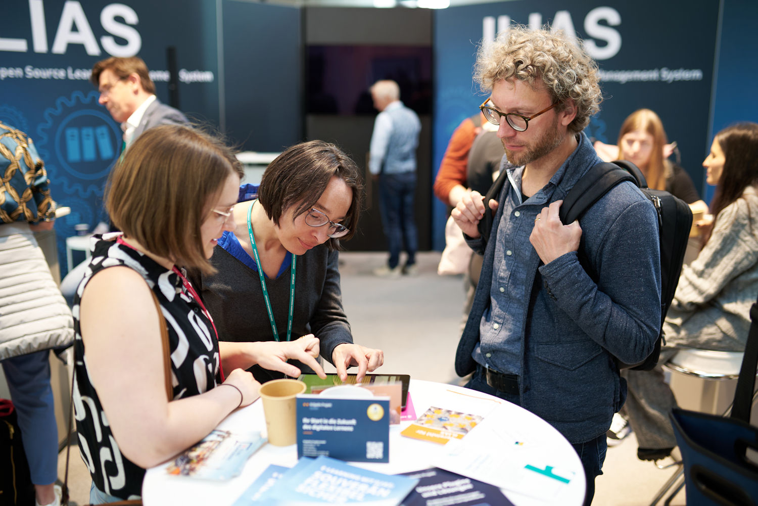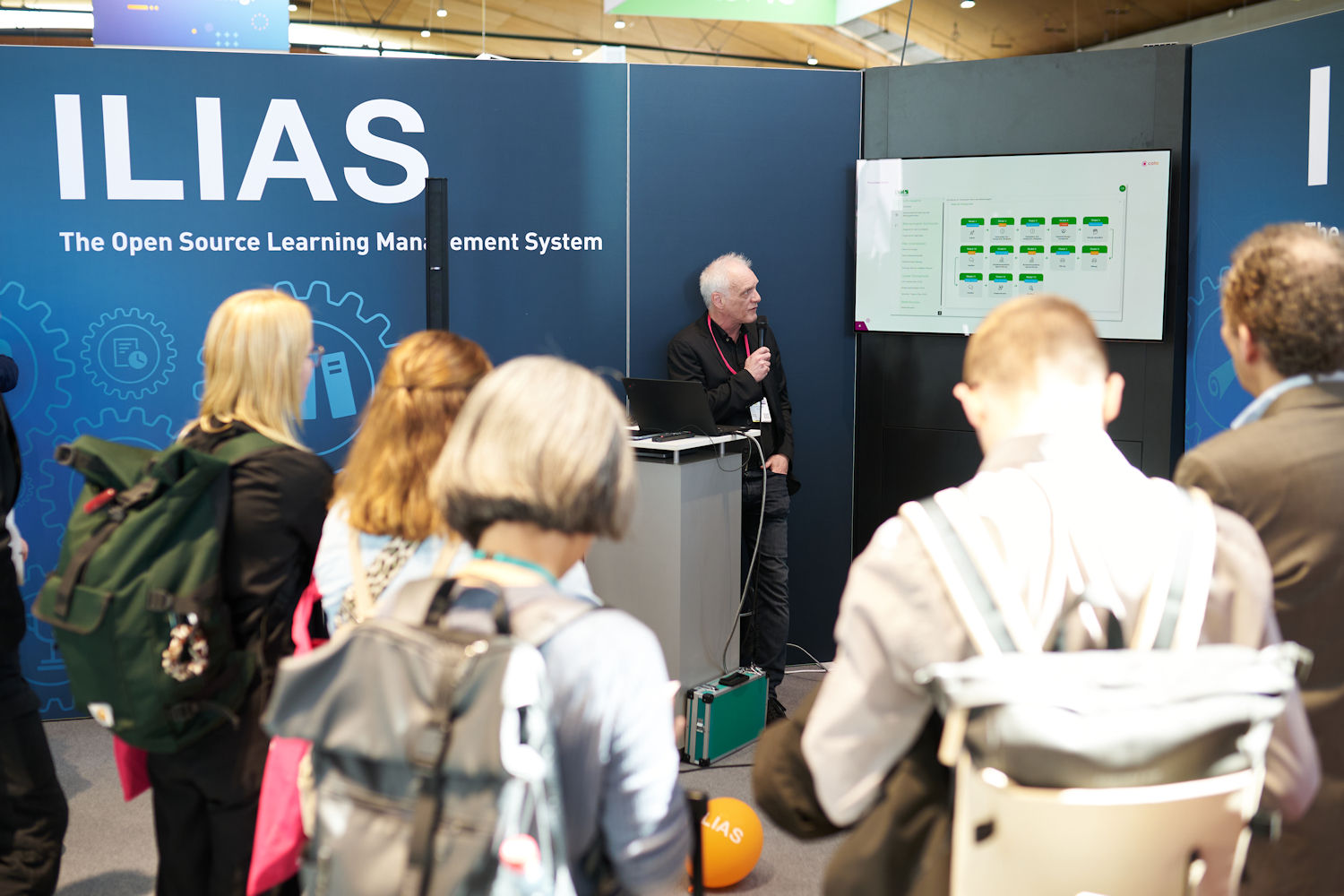 Doch zurück zur Learntec: Vom 6. bis 8. Mai präsentierte sich ILIAS als leistungsstarke Open-Source-Lösung. ILIAS beweist, dass Qualität nicht teuer sein muss. Unterstützt wurde unser Stand von einem starken Team: Die Kröpelin Projekt GmbH und CaT Concepts and Training GmbH waren als „Gold-Sponsoren“ mit eigenen Präsentationsflächen vertreten. Daneben waren auch weitere Service-Provider dabei, die den Stand mitfinanziert hatten: Leifos, Surlabs und Databay. Und auch viele weitere engagierte Mitglieder der ILIAS-Community kamen unterstützten uns – darunter Mitarbeiter des ILIAS-Vereins, andere Service-Provider und institutionelle Mitgliedseinrichtungen. So war für alle Besucher und Besucherinnen garantiert die passende Ansprechperson für ihre Fragen zur Stelle.
