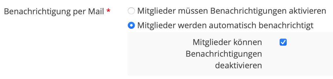 Für Mitglieder in dieser Gruppe sind Benachrichtigungen standardmäßig aktiviert.