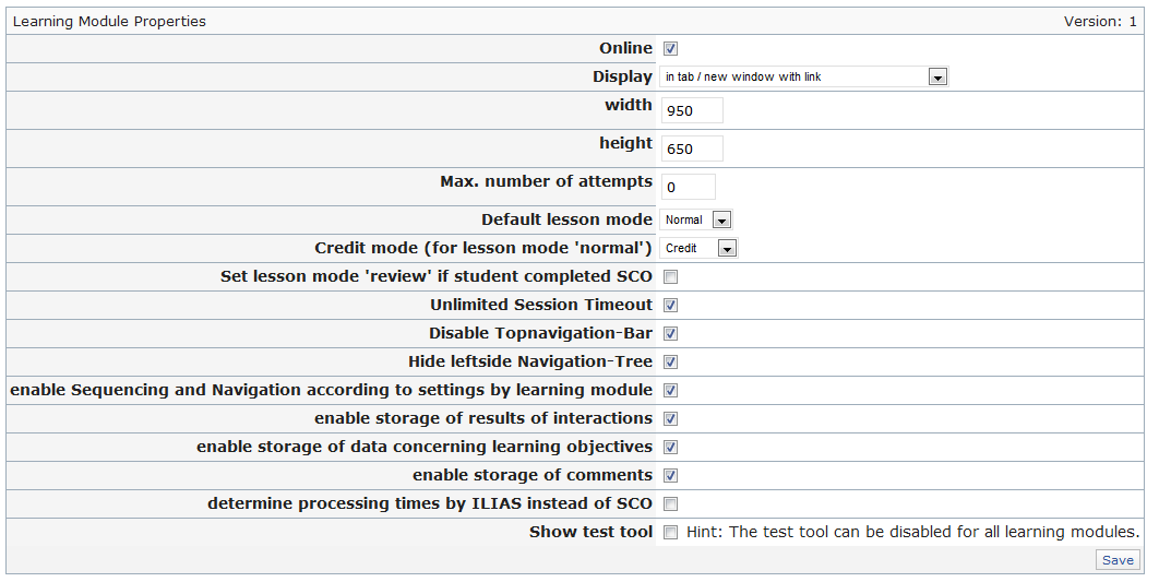 Currently, after uploading new SCORM module, it is always necessary to manually set all the Learning Module Properties. With high count of modules to upload this adds to the workflow. It would be useful to either be able to set default options or if ILIAS remembers the last choices of the user.