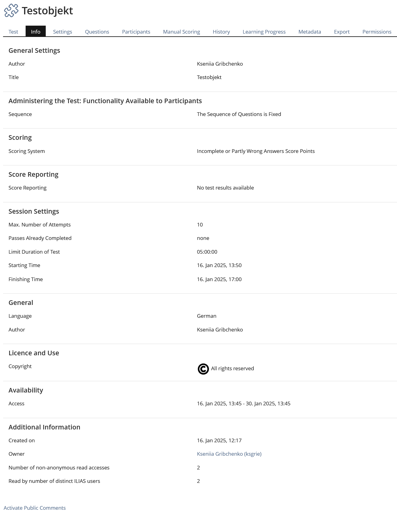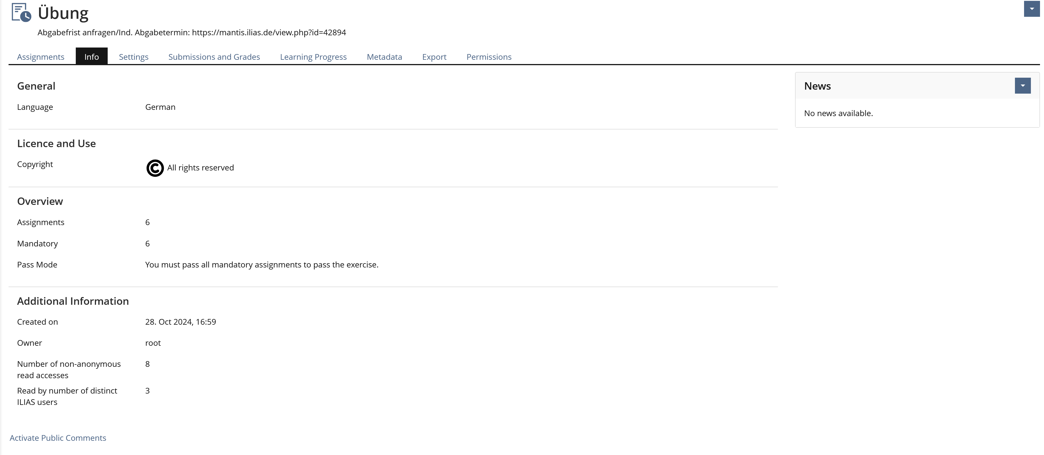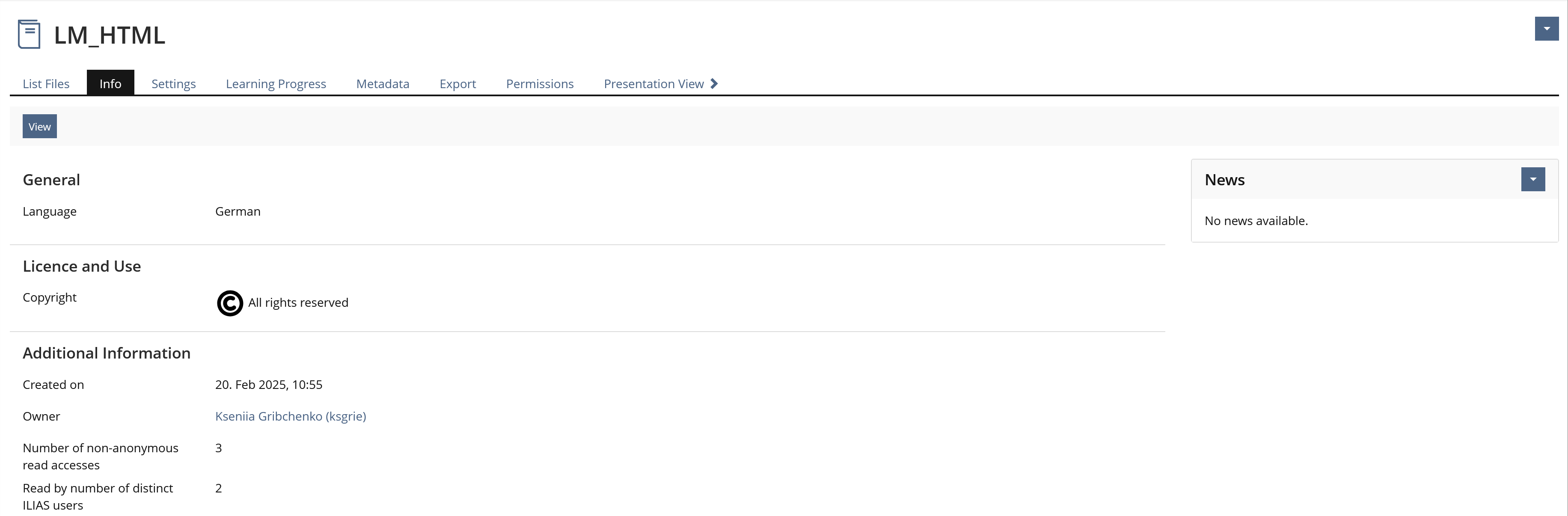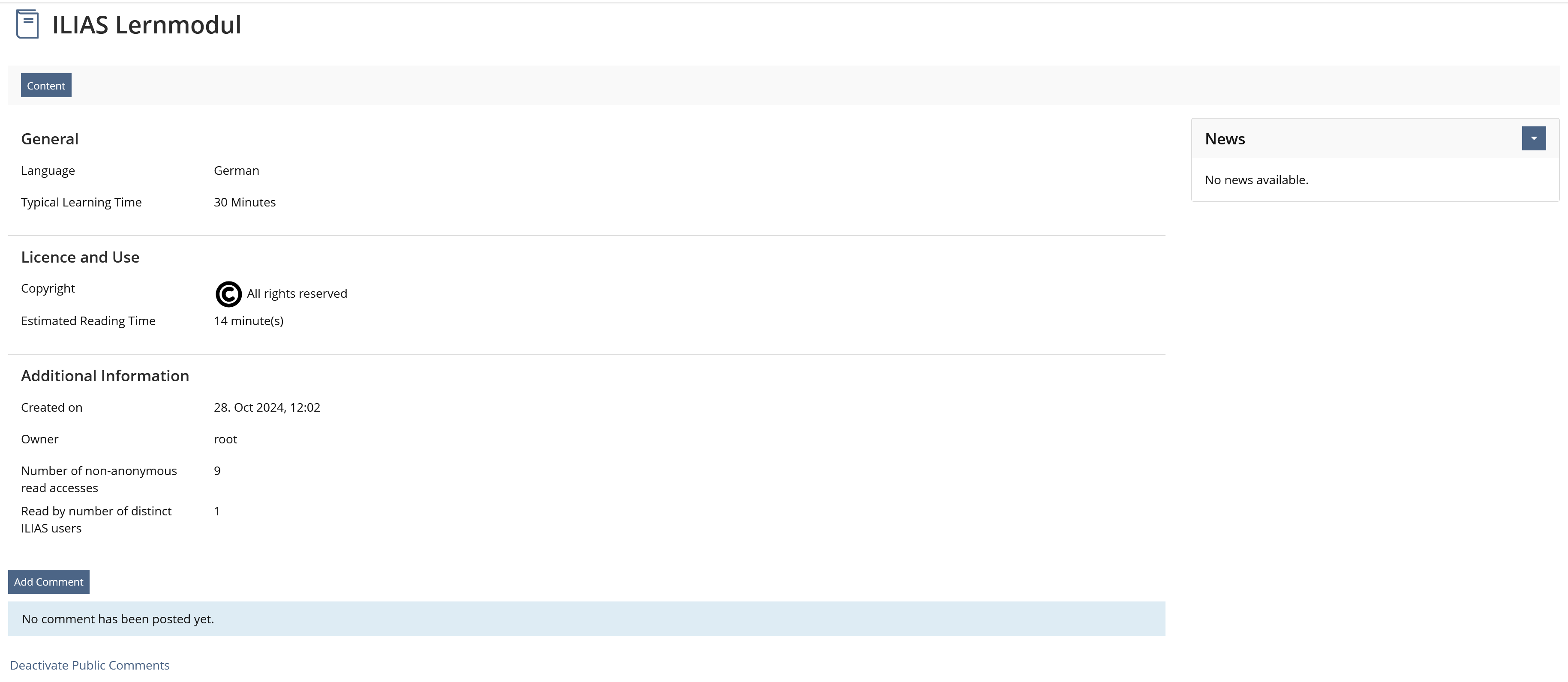 Learning Module ILIAS | Page used for handling learning progress and several information about content