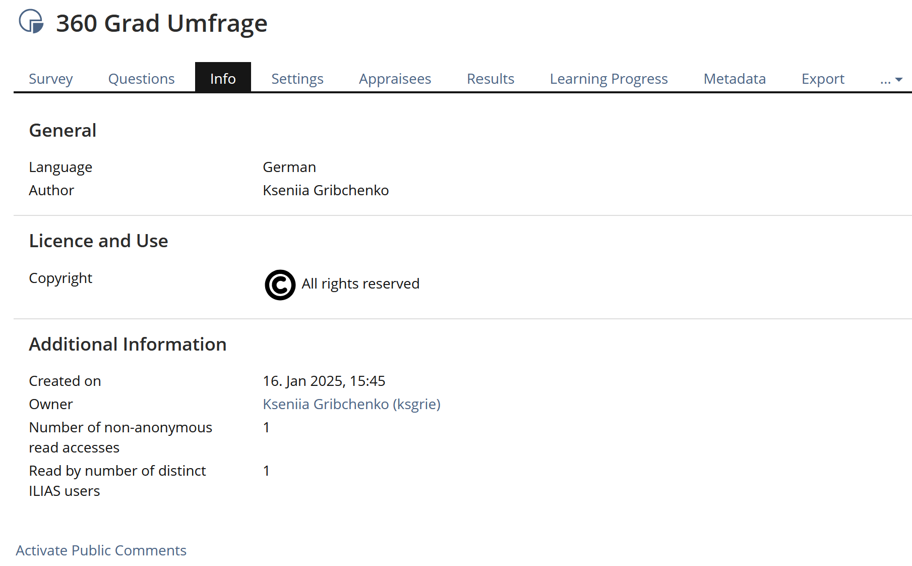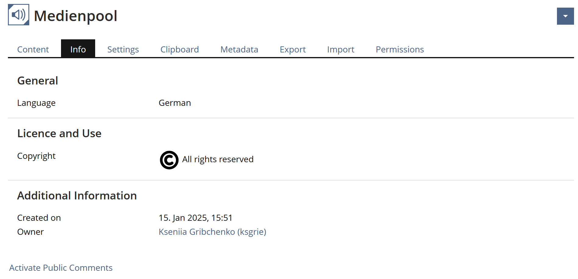 Number of Read Events | text only | This is statistic data and only accessible and interesting for users with WRITE permission. Should be moved to a better place. |