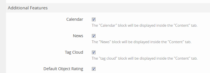 - The container objects "Course" and "Group" should offer the possibility to show a "tag cloud" block.