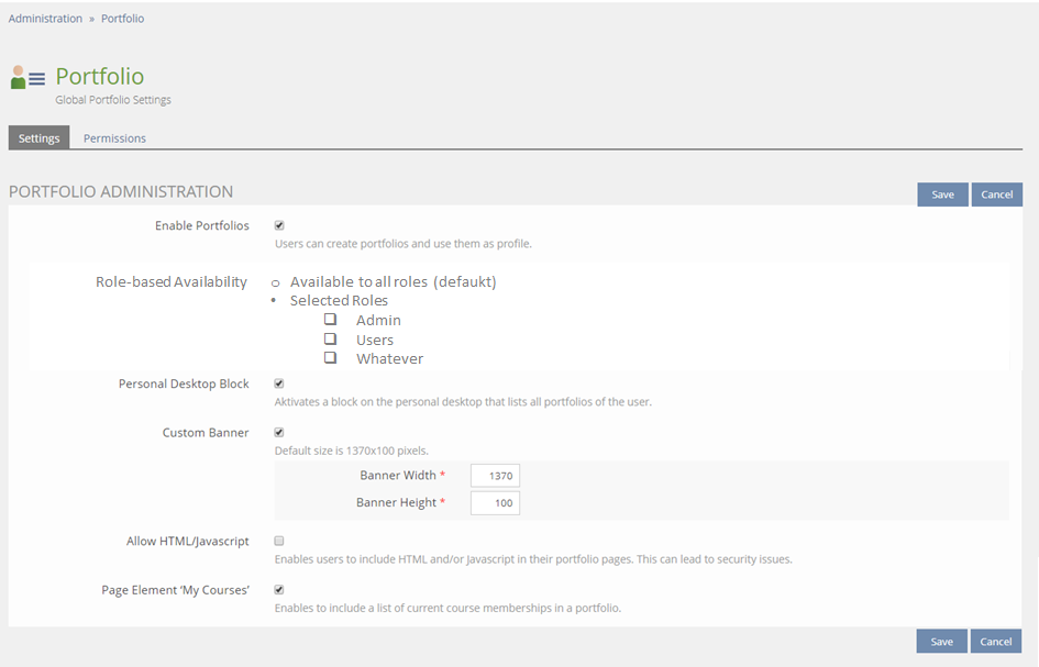- If the use of Portfolios is limited to certain roles, users editing an exercise must be informed about the fact that some or all of their articipants may not be able to complete portfolio assignments.