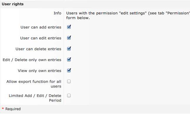 JF 12 May 2014: We still appreciate the "View only own entries" setting and schedule it for 4.5.