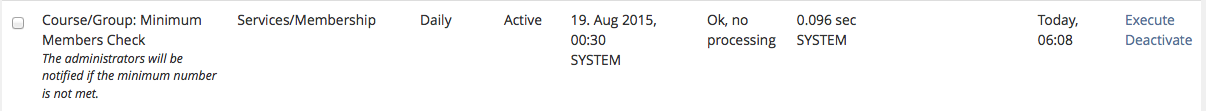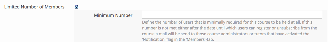 Lauener, Hansjörg [lauener]: For ILIAS-Admins: Please note: this feature will only work if the cron-job 'Course/Group: Minimum Members Check' is activated in the ILIAS administration.