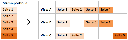 Zu beachten ist, dass bei parallelen Views eine Synchronisation der Inhalte besteht. Sollten Seiten von einem Portfolio in ein anderes kopiert werden, so müssten beide Seiten anschließend einzeln gepflegt werden.
