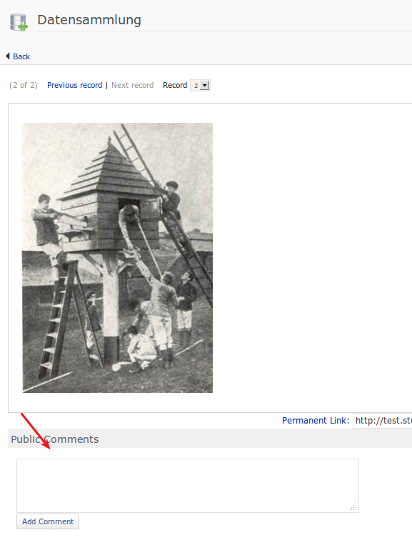 Users should be able to write comments on entries in the detail view with a box "public comments" like in Learning Moduls.