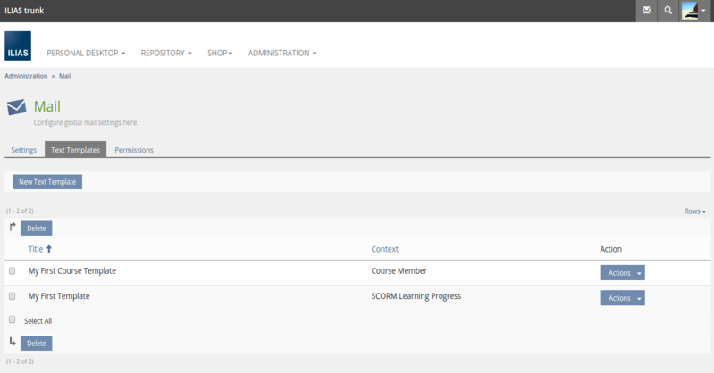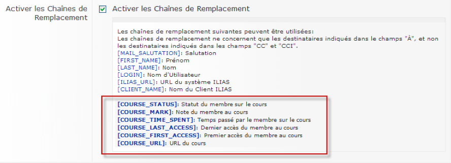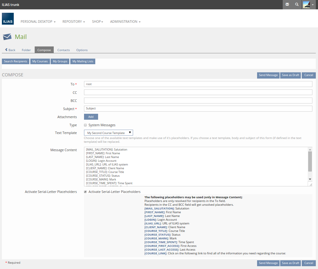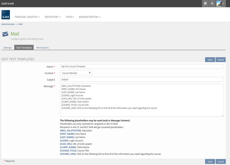 ILIAS Mail-System: Vorlagen mit Platzhaltern