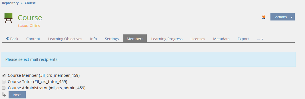 Additional placeholders for course mails are highly appreciated to ease the daily course administration and communication with course members.