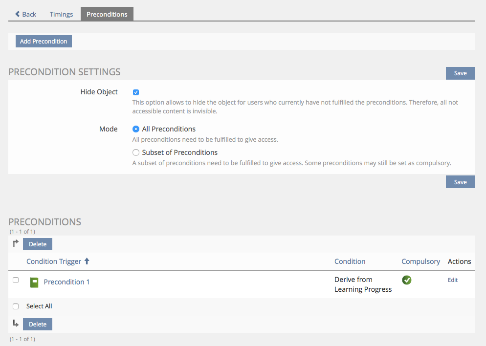 By enabling ‘Hide Object’ the current object can be hidden as long as the user has not achieved the required precondition.
