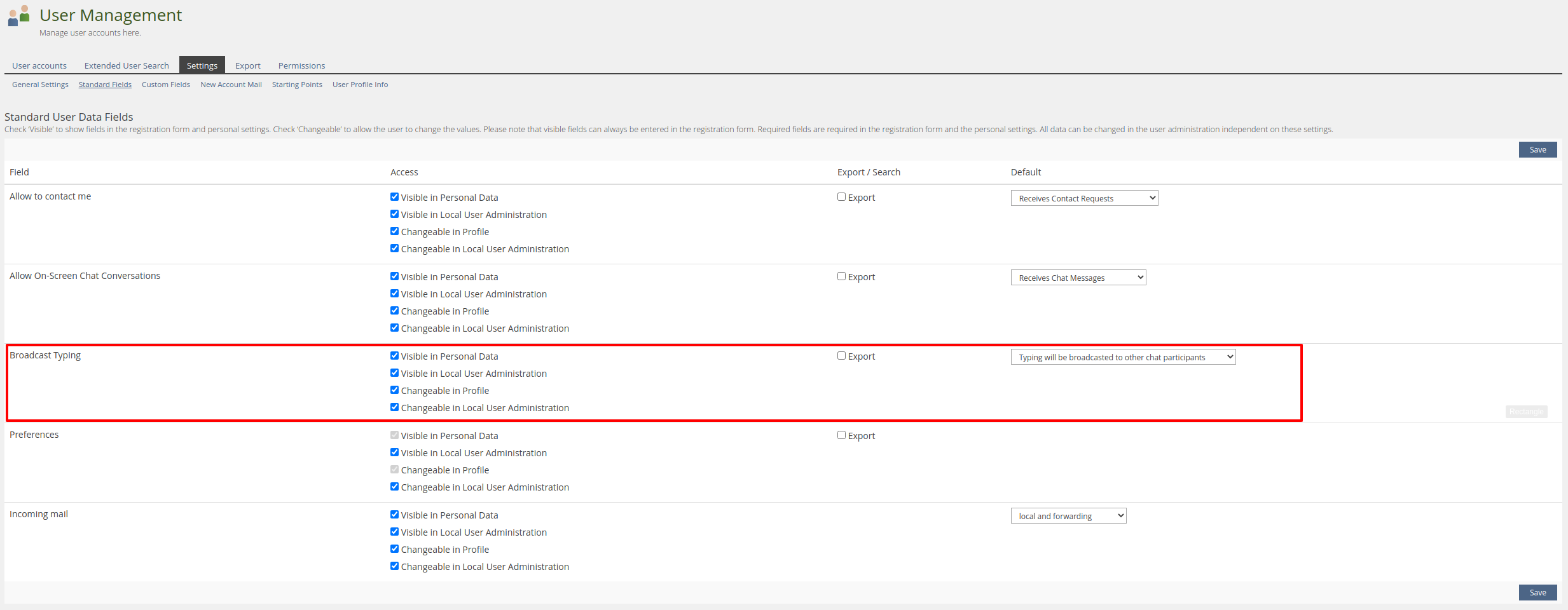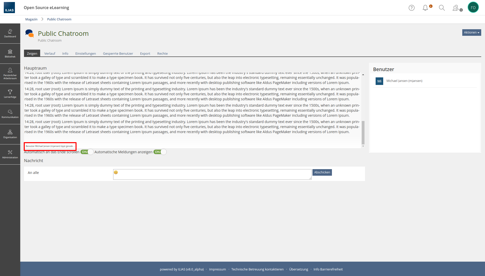 If the user interrupts typing for more than 5 seconds, the message "[User XY] has stopped typing" is displayed. This information is no longer available after the session ends.