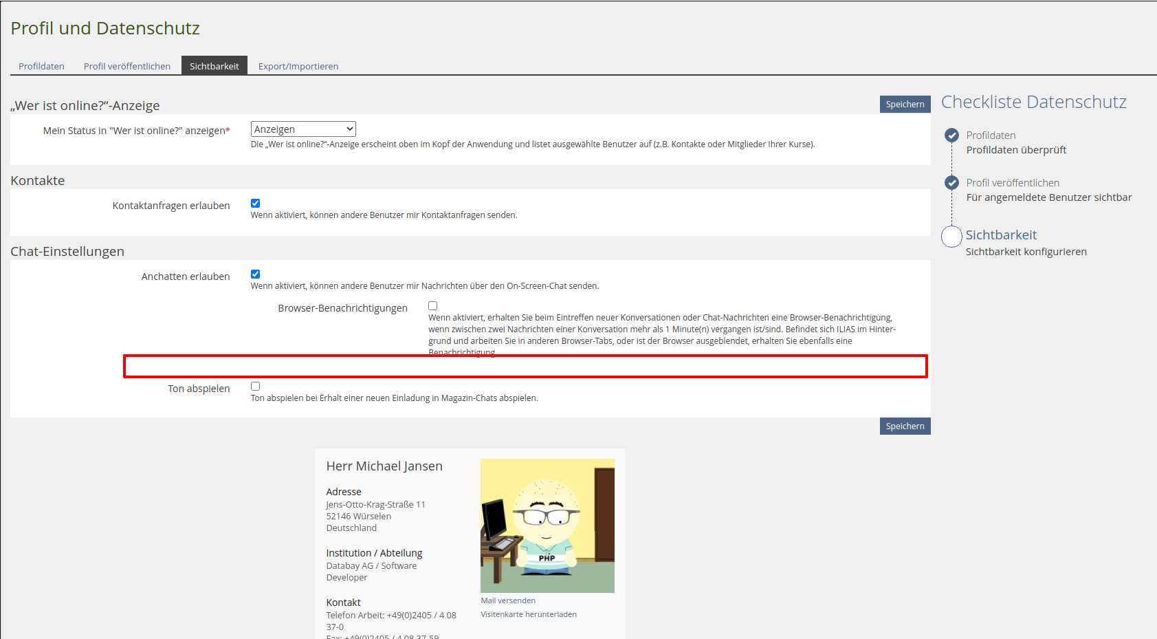 - to have an option in the Personal Settings to activate this feature personally (default = deactivated in respect of privacy regulations).