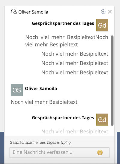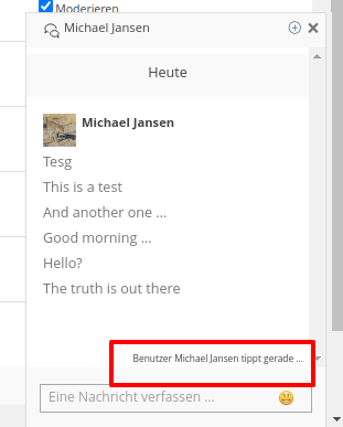 Especially in the repository chat, it is noticeable that the hint (someone else is typing) and where the message will appear are very far apart. If this typing hint were in the message window (where the message also appears), I think there would be a clearer separation between "here is my area where I can formulate my message" (my message) and "here I can see who is writing what" (message window).