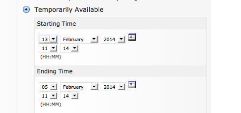 v3: You can choose a timepicker in the Availability of an object: eg. "Temorarily Avilable".