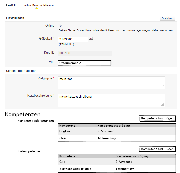 Please have a look at the specification "Kompetenzmanagement.pdf": Competence Management - Competences in corporate context