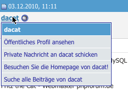 - If you click on the user, then the user can choose between: a) Show me the profile of xy, b) Show me the personal website of xy, c) Show me all postings of xy (see picture)