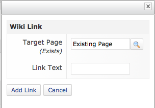 New button for creating wiki links to new or existing pages using a dialog (icon suggestions welcome). Maybe the new button should be in first position.
