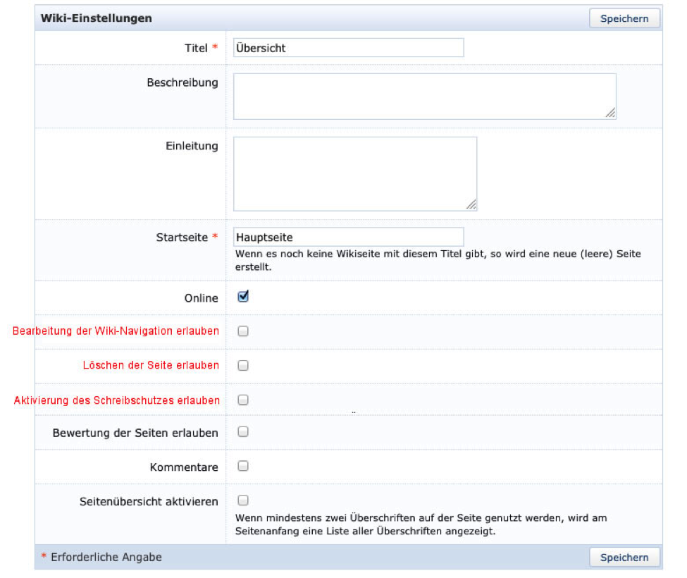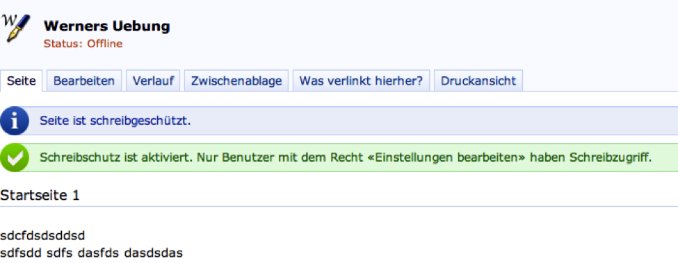 Users with the "edit content" permission can activate the "read-only" function for all wiki pages. This function can be deactivated by the activator, by the wiki owner or users with the permission "Edit Settings".
