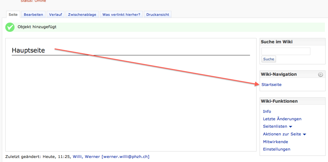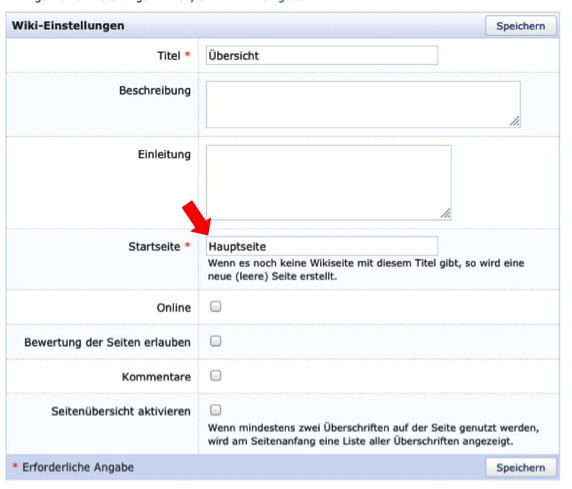 However, among normal wiki admins (=user with “edit settings” permission), there is a big ambiguity between the function "start page" (landing page) and the name of the first page.