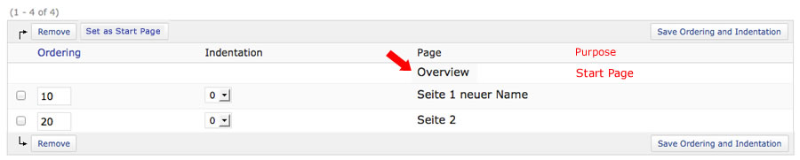 - Renaming the start page is possible using the existing "Rename Page" feature.