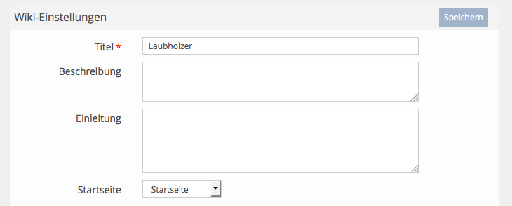 Though later on, if one opens the wiki settings, the Start Page setting shouldn’t be a text field any longer, but a drop down menu listing all existing pages. There the landing page could be changed by choosing another existing wiki page.
