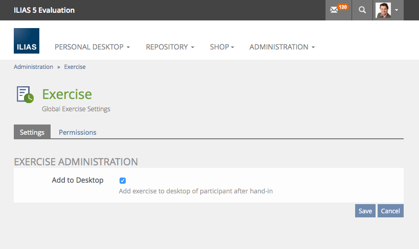 Administration Setting: Add exercise to Personal Desktop