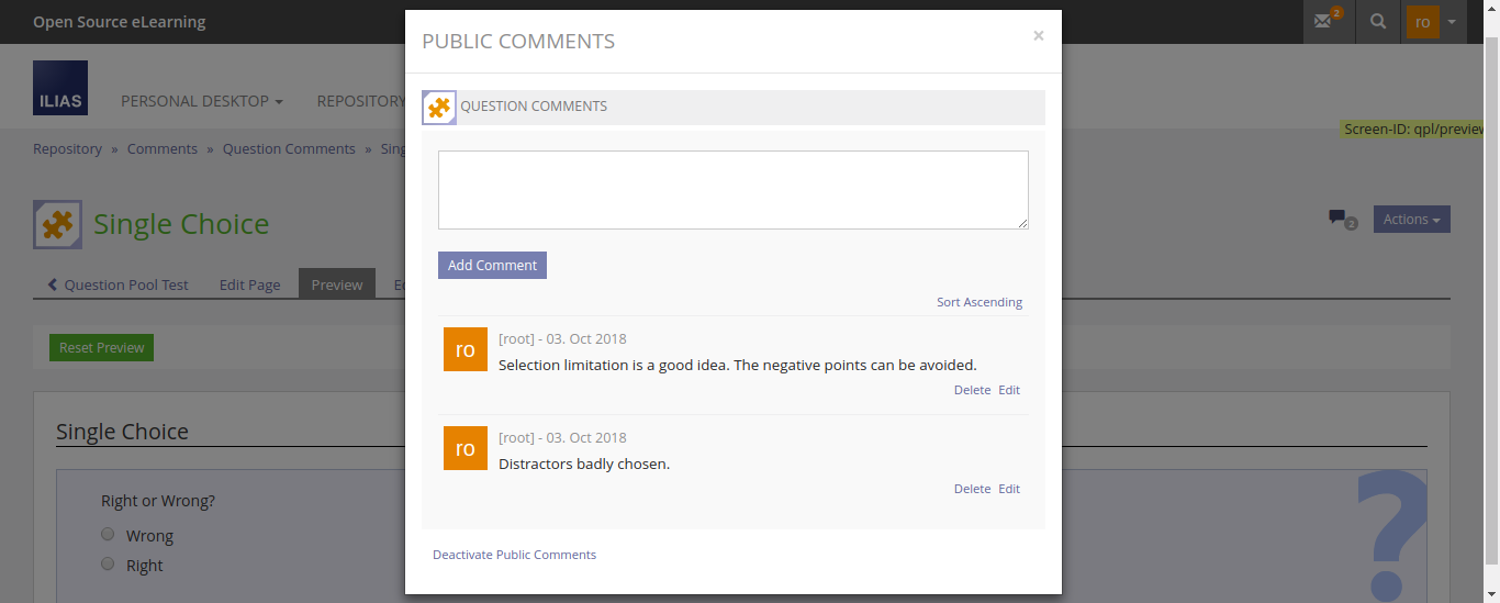 8.2 Question Commenting from the Questionpool