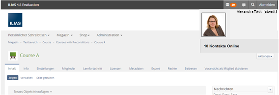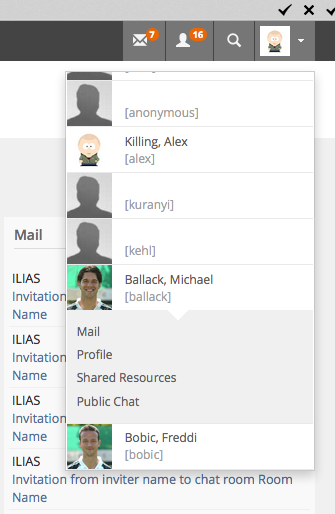 The Awareness Tool increases the visibility of users throughout ILIAS: The Awareness Tool displays other users presently online. It will display users relevant to you ("contacts").