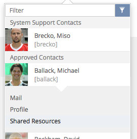 Kunkel, Matthias [mkunkel], August 31, 2015: At the time being the two related features "Who is online?" and "Contacts" use different layouts to present users, see screenshots. I recommend to use the look of "Who is online?" for Contacts, too. Additionally, the position of the pop-ups has to be a bit lower. At the moment it is hiding the top bar.