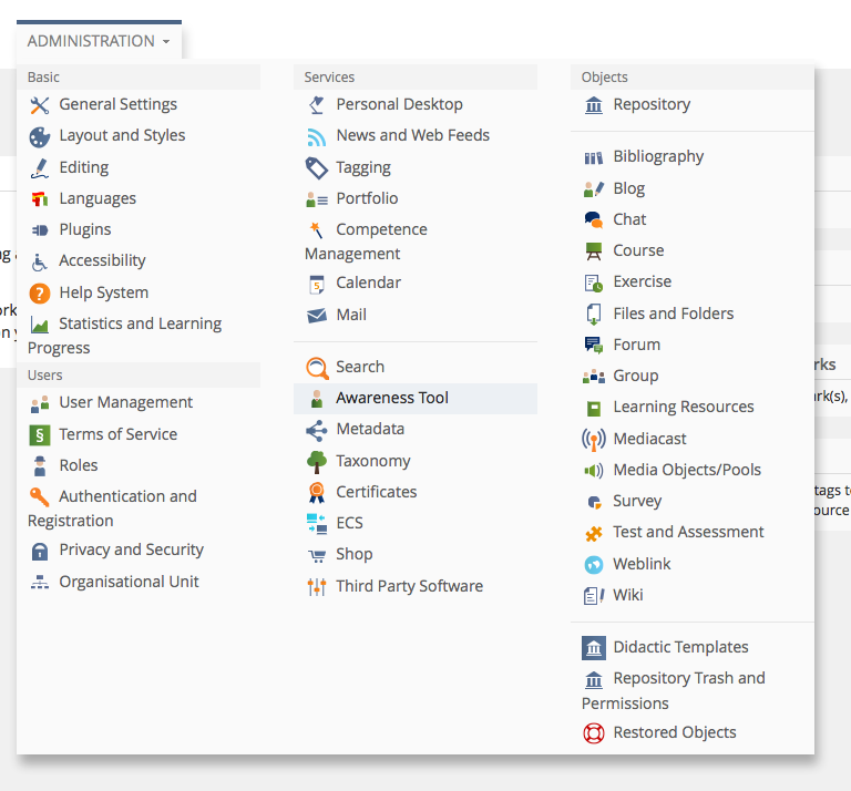 - Improved awareness is accomplished by providing the Awareness Tool on every screen throughout ILIAS.