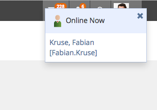 Starting Point: Top Bar Icon (second from left) in the top bar. The number is the number of distinct users that "fall into" the configured categories. If offline users are shown, they will be counted as well here, too. If caching is activated the number will only be updated when the specified time period has passed. If the number is 0 no icon will be displayed. If one user appears in two categories at the same time (see expanded list) she will not be counted twice.