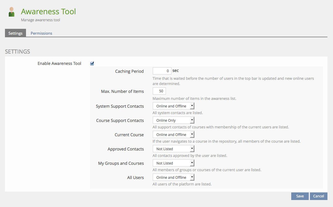 The old "Hide my online status" setting of the user settings is no re-interpreted and renamed as "Hide Me From Awareness Tool". Please note that the visibility of this settings needs to be activated in the administration.