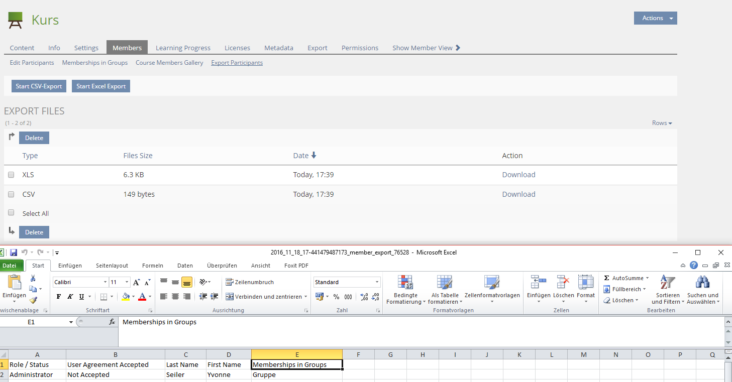 The problem: The course member tab allows an overview of group memberships inside the course but doesn’t offer an export option.