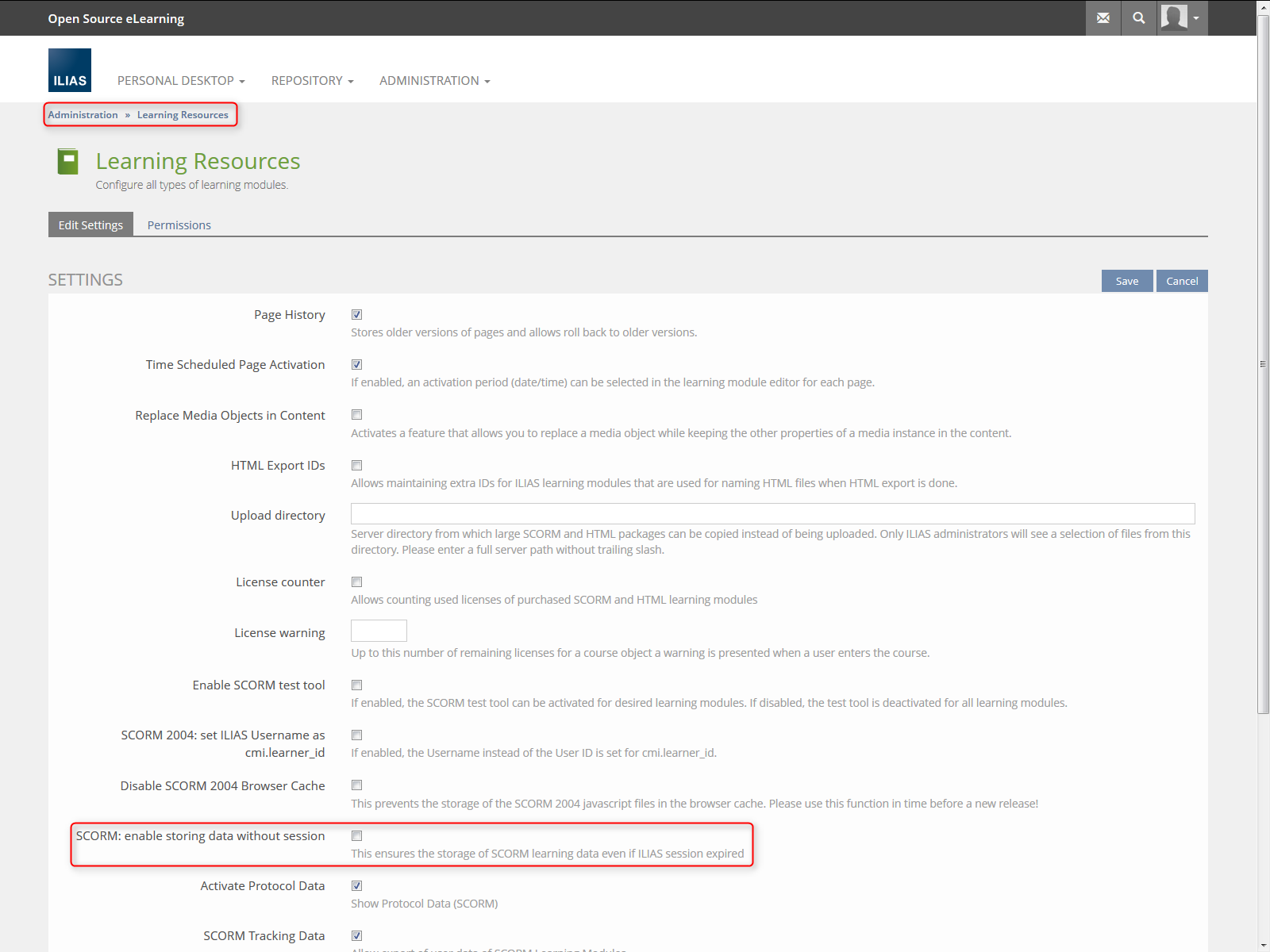 The option is disabled by default and can be activated at Administration >> learning ressources.