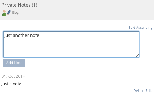 - Private Notes (Actions => Notes)