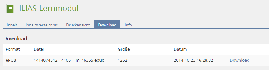 Offering the possibility to export and download an ILIAS Learning Module as an ePUB e-book makes it possible for students/learners to independently read and learn with the learning module offline using their e-book reader.