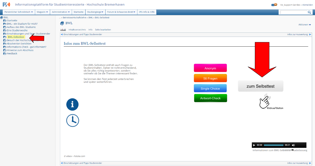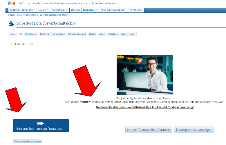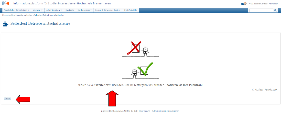 Lerner, der von Lernmodul in Test gewechselt ist und nach dem Test wieder zurück zum Lernmodul will, geht schnell verloren. Notwendig wäre ein Link, der den Lerner zurückführt (und weiß, wo er her kam).