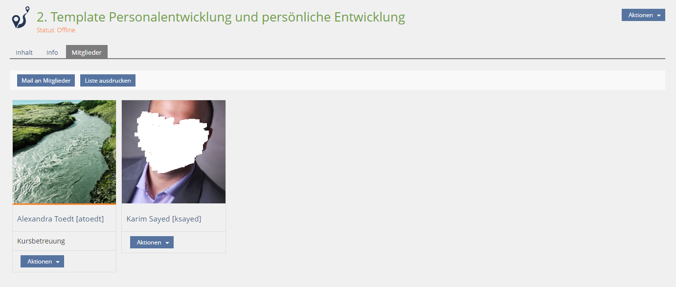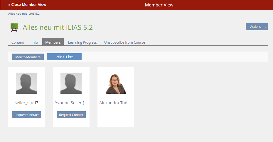 - In the Settings-tab of a course in the section 'Additional Features' underneath the option 'Show Members' a new option is inserted: "Participant List for Members".