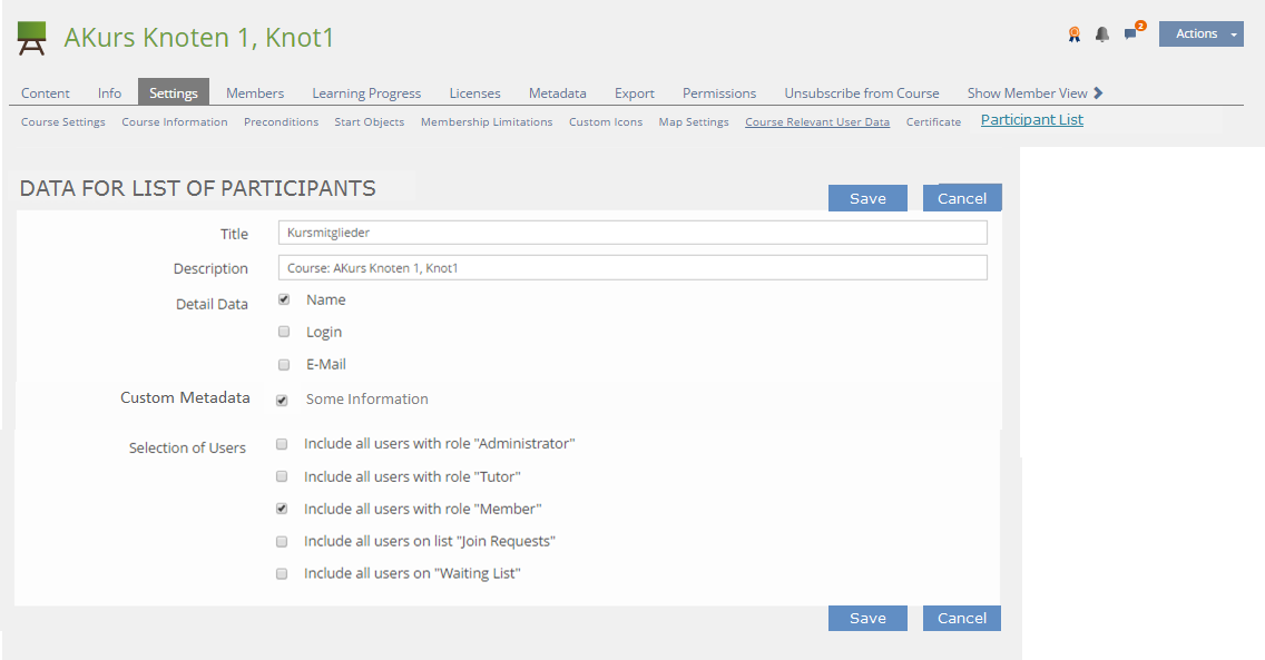 In the new sub-tab "Partcipants List" the Course Admin can specify which data should be included in the printable List of Participants.