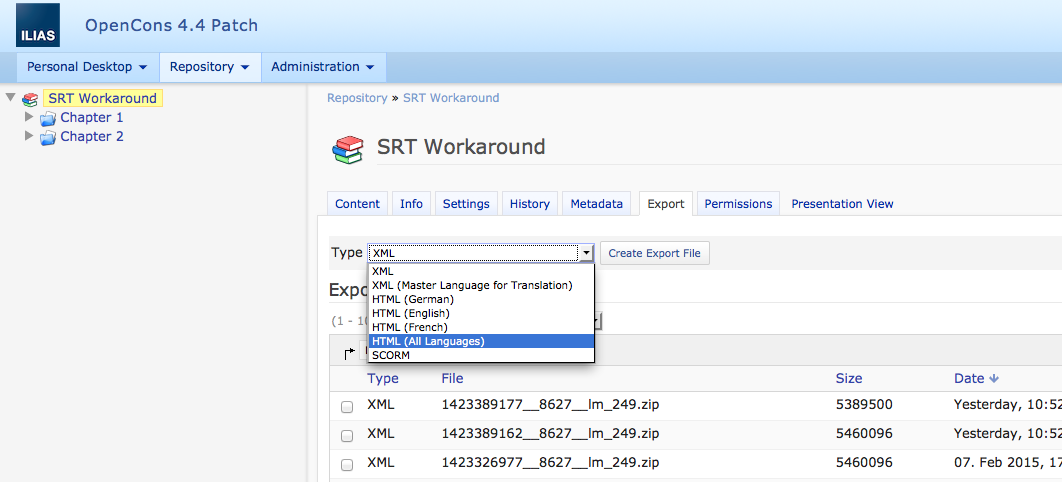 - http://testrail.ilias.de/index.php?/cases/view/6397: C6397 Export-Datei für Übersetzung erzeugen