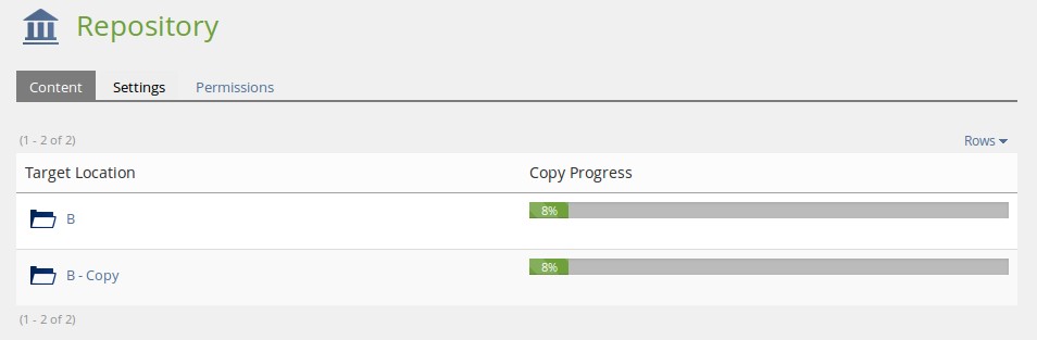 An ajax based progress bar should be implemented to inform the user about the current progress of the copy process.