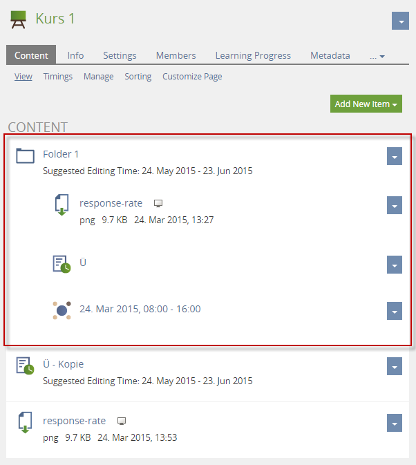 Folders can be used to structure content in courses.