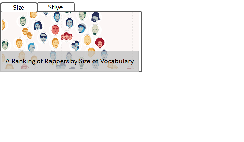 A keyword / very short headline in a tab, belonging to it a picture and on top of the picture a longer headline, the complete area of the picture-cum longer headline is a link to something.