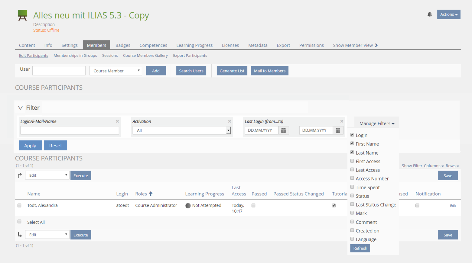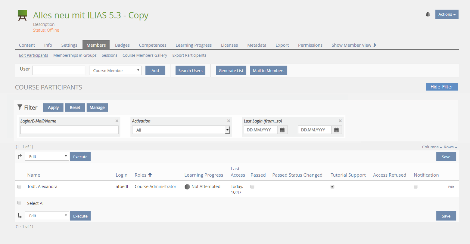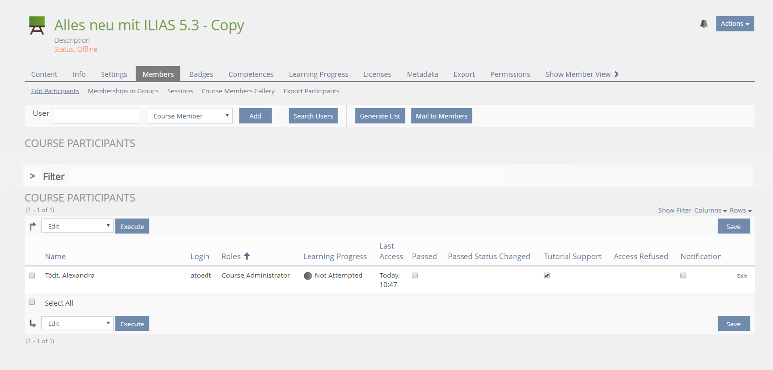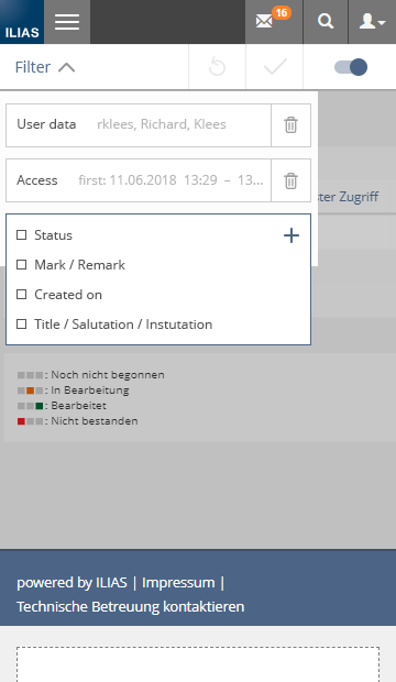 - ILIAS will remember filter status (shown / off and which filter elements to show) per user and across sessions