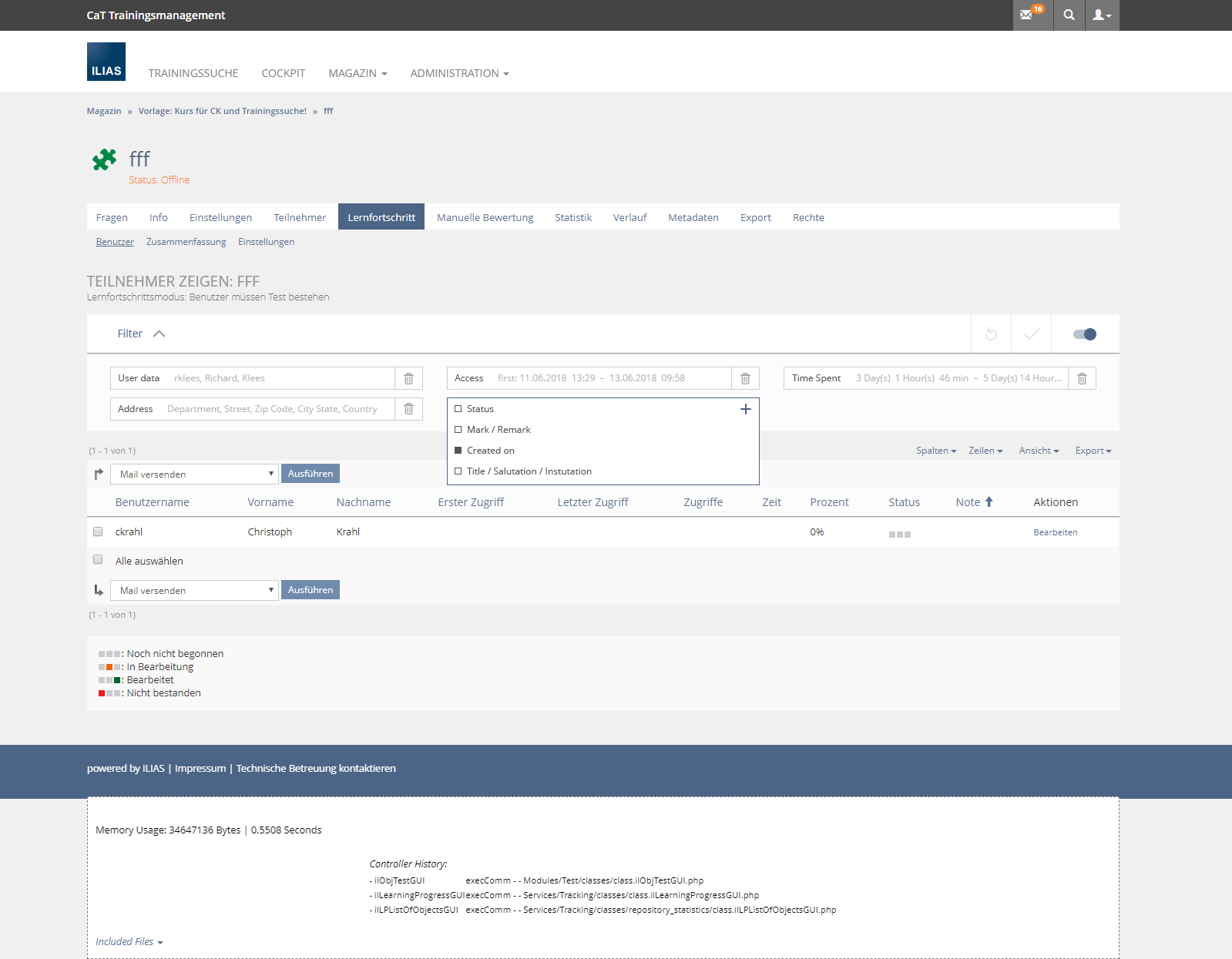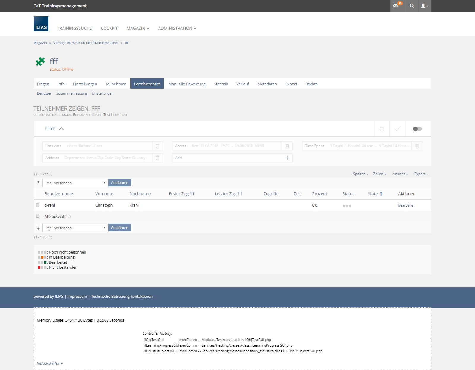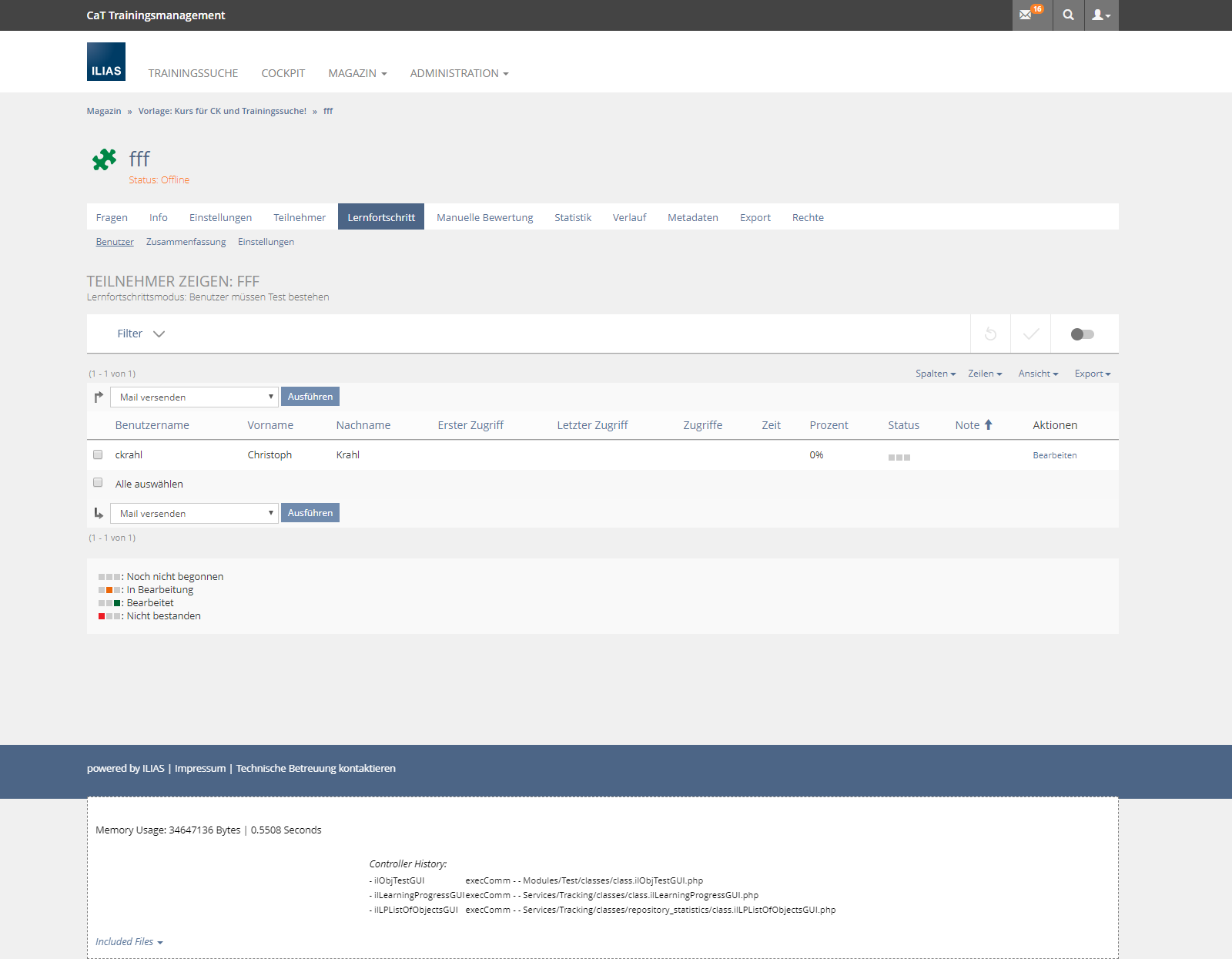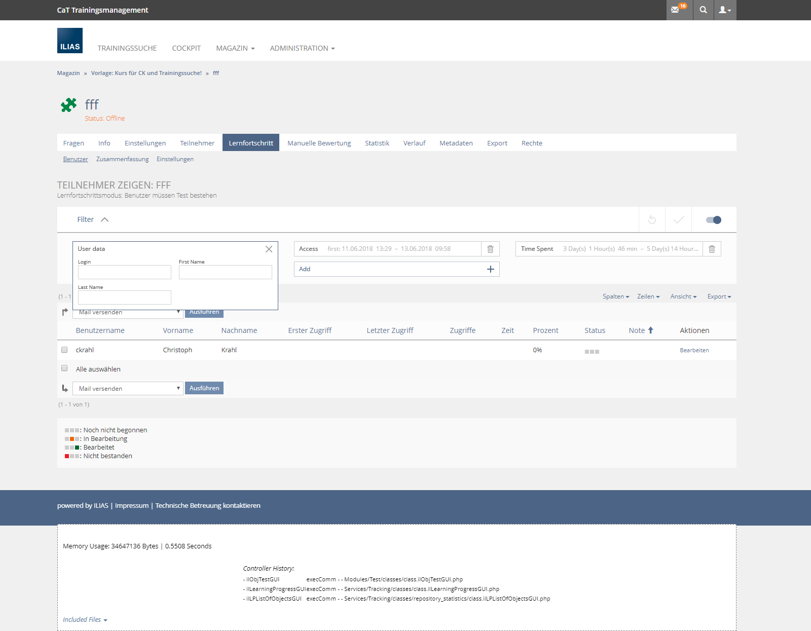 - Learning Progress > Users