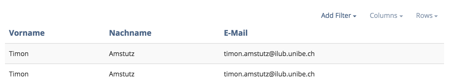 Amstutz, Timon [amstutz], Seiler, Yvonne [yvseiler] (University of Bern), 2018-05-30: We are grateful for the initiative to revive and tackle the filter issue. Filters are also an important UI element for us at the University of Bern, which should have the goal of being used as sensibly as possible. From our point of view it is a very powerful tool and due to the current display (hardly visible) and the current handling (somewhat sluggish behaviour) it is not used enough for the benefit it can bring.