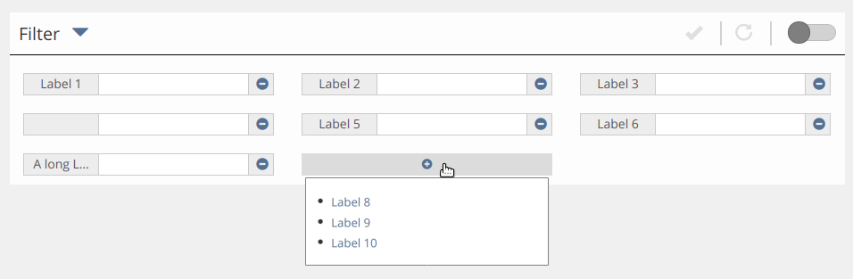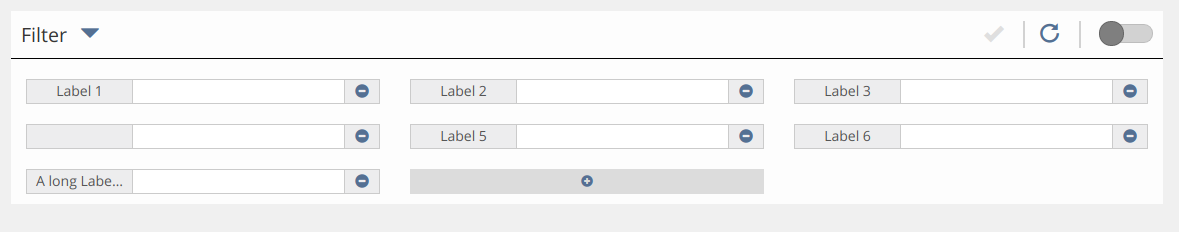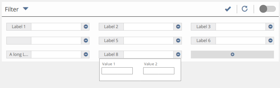 - Filter are gridded with a fixed width of all individual filter elements