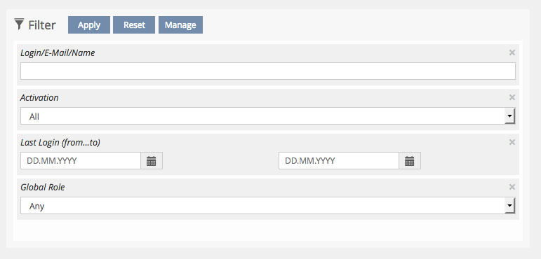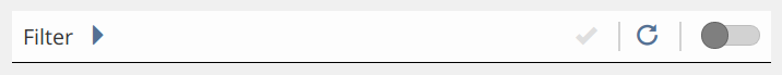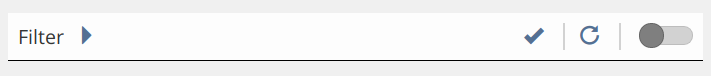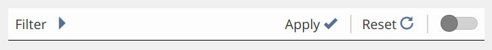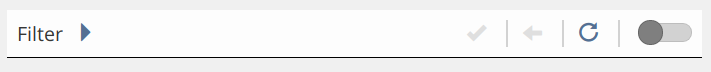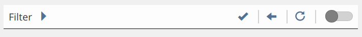 After changing the items, the symbols for "reset" and "apply" on the right side of the bar become active. Clicking "apply" actually applies the filter, i.e. changes the content of the filtered table. Clicking "reset" will restore the filters default settings.