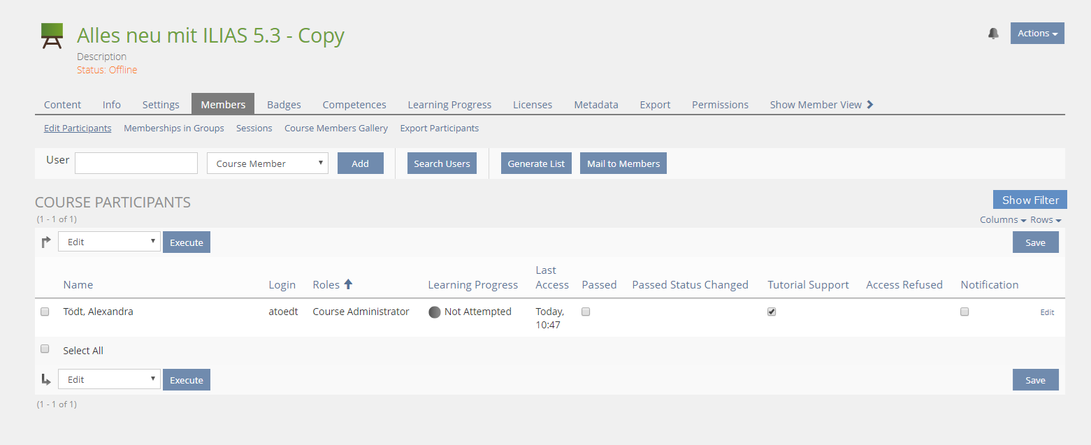 - Course > Members > Edit Participants