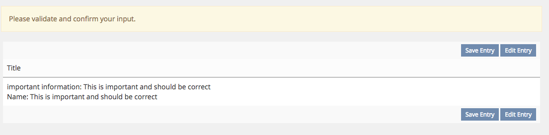 There is a new option the table-settings where user can activate a save confirmation. So before a new record get saved, the user gets an overview of the entered data. He has the option to go back an modify his entered data: